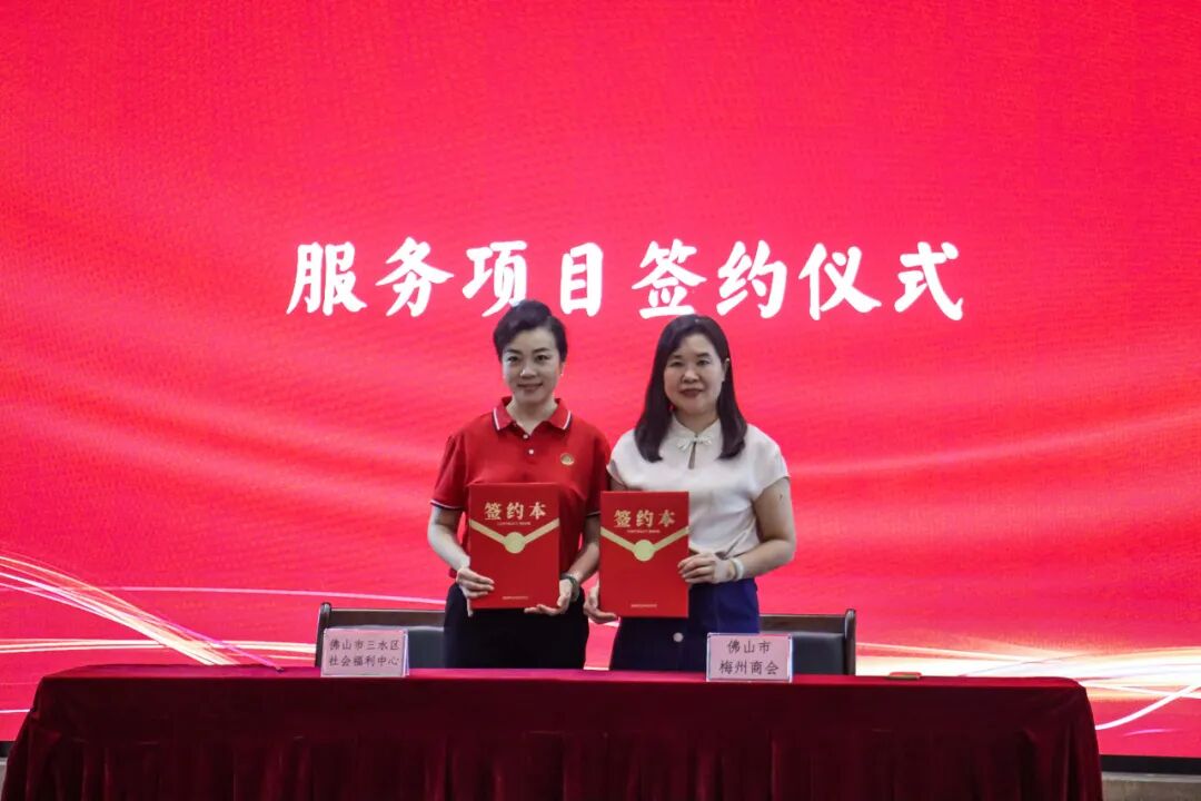 会上,佛山市梅州商会与三水社会福利中心正式签署服务项目协议。此次签约打通了社会组织力量与民政服务需求的精准高效对接,是佛山市引导社会力量参与民生服务、深化民政事业改革的一次重要实践。