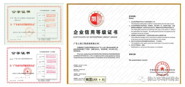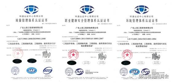 公司的服务赢得了良好的的社会声誉,在顺德区建设工程中介单位执业信誉等级评价中,连续多年被评为“优良信誉等级”,诚信分数多年排名第一,同时连续多年获得广东省工商局颁发的“重合同、守信用”企业称号。在2016年更获得由中国建设工程造价管理协会颁发的企业信用AAA+级证书。