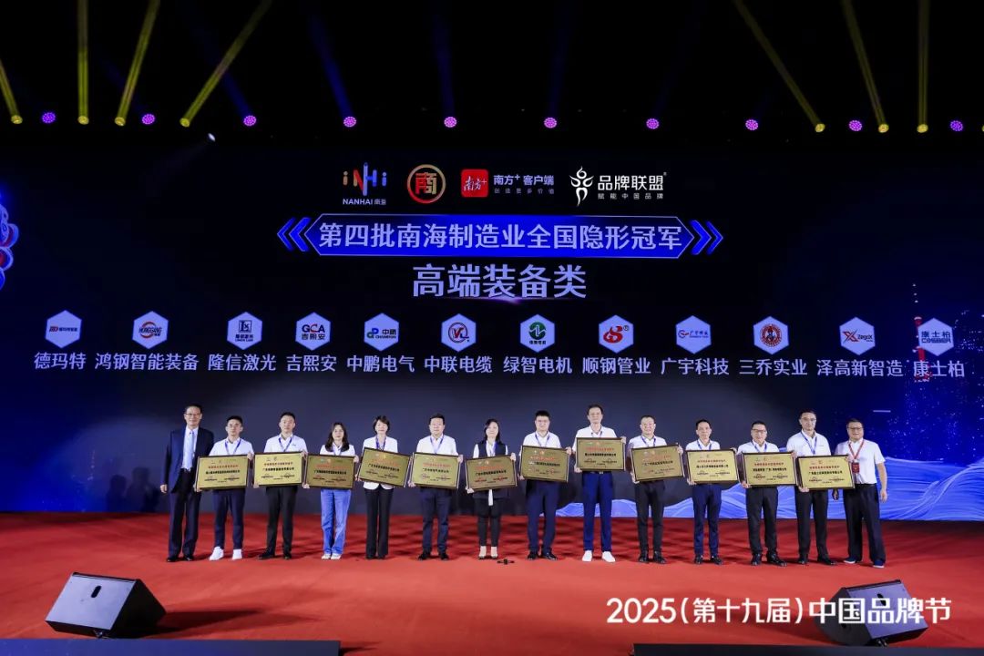 8月,以“AI与出海”为主题的2025(第十九届)中国品牌节在深圳隆重举行。活动期间,发布了“2025 中国制造业隐形冠军(南海)榜单”,并举行第四批南海制造业全国隐形冠军授牌仪式。商会监事长单位广东吉熙安电缆附件有限公司(简称:吉熙安)脱颖而出,荣膺“第四批南海制造业全国隐形冠军”称号!