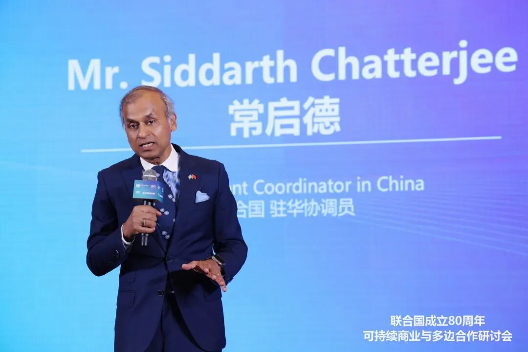 在开幕致辞环节,联合国驻华协调员常启德(Siddarth Chatterjee)强调了多边主义和各方携手努力共同应对当前全球挑战的重要性。他表示:“在联合国成立80周年之际,愿我们将今日的对话转化为明日的解决方案,重塑多边主义,为韧性供应链注入动力,并为全人类构建可持续的未来。”