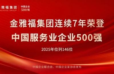 荣誉喜讯 | 金雅福集团连续七年登榜中国服务业企业500强,位列146名!